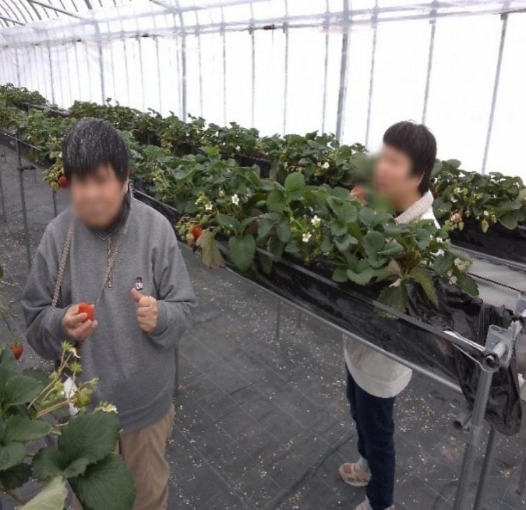 少し寒い時期でしたがイチゴのビニールハウス内に入ると
