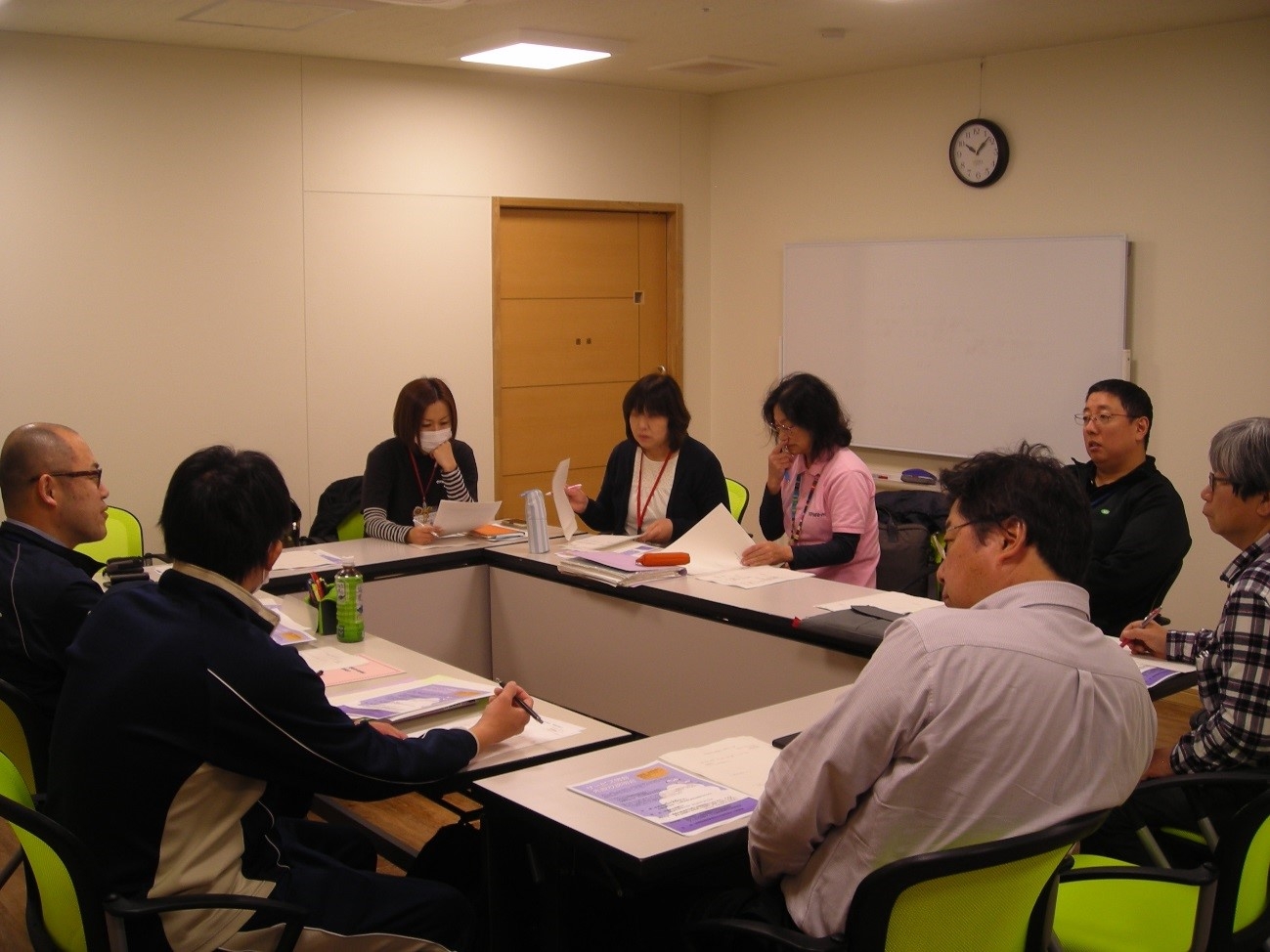 写真は、湖東地域障害者自立支援協議会の児童部会に参加した時のものです。湖東地域の障害児の課題を検討している部会で、相談支援員として、障害のある子どもやその家族が抱えていることを発信しています。